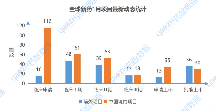 1月全球共949个药物有相关更新动态,其中有482个项目推进到最新的阶段,其中在中国境内进行的项目共313个,境外项目有169个。
