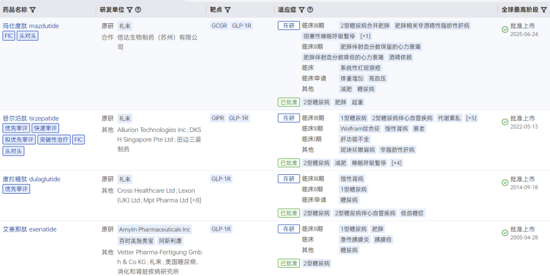 礼来GLP-1产品矩阵